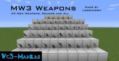 Мод добавляет в Minecraft огромное количество современного оружия из игры MW3, с помощью которого вы сможете устраивать бои между друзьями или же наспавнить кучу зомби и испытать на них это оружие.