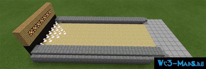 Чтобы начать строительство боулинга вам нужны блоки Lane и пин-код блоки.